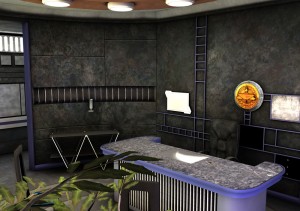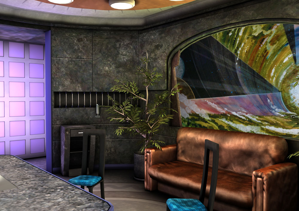 So, there is it. I should point out that the view out of the window is NOT what will be in the game. I’m not saying what the view will be but its not anything like that. I found a painting of Rama which kind of fits with the circular view of the B5 station but as this isn’t the station it doesn’t matter what i put out there. These are just sample renders with some quick GI settings but they look ok and I should repeat that the viewscreen is supposed to be untextured at this stage.