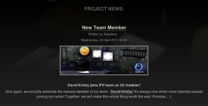 And again, we proudly welcome the newest member of our team – David Kirkby! It’s always nice when more talented people joining our ranks! Together, we will make this whole thing worth the wait. Promise… 🙂