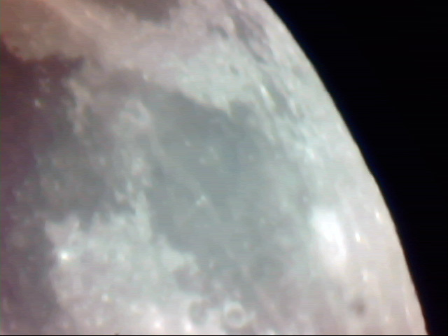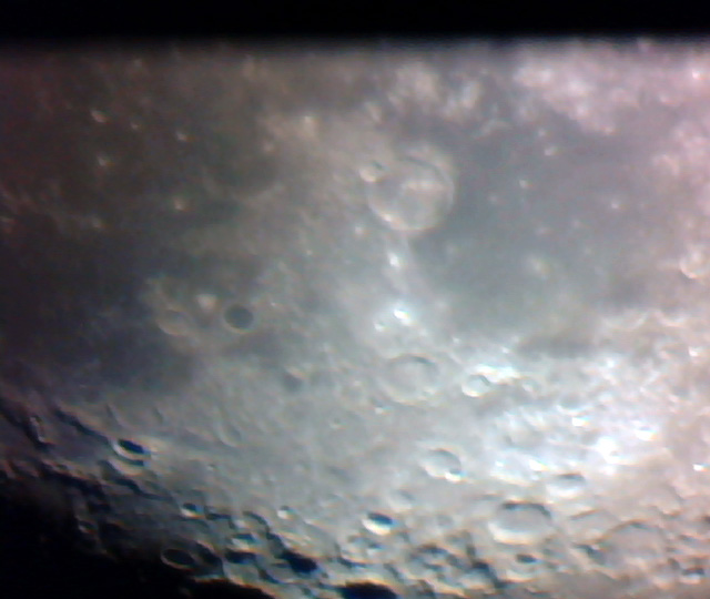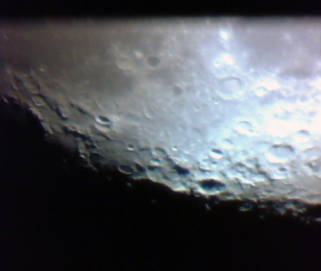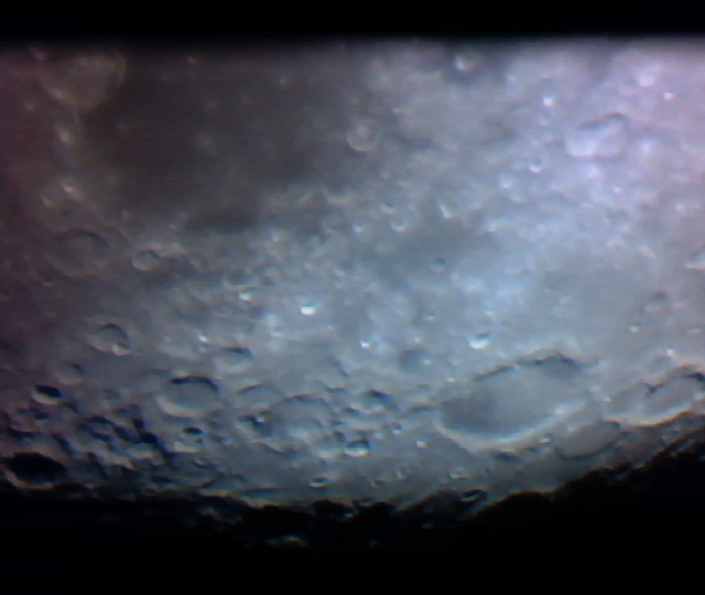 Using the lash up we managed to get some footage and stills tonight as the moon finally made an appearance. The camera is only a cheap CMOS one and theres no way to fit a lens on the front of it so the moon basically swamped the whole view and due to the poor lux value of the webcam we couldn’t pick up Jupiter at all but I think this has worked pretty well for a first attempt.